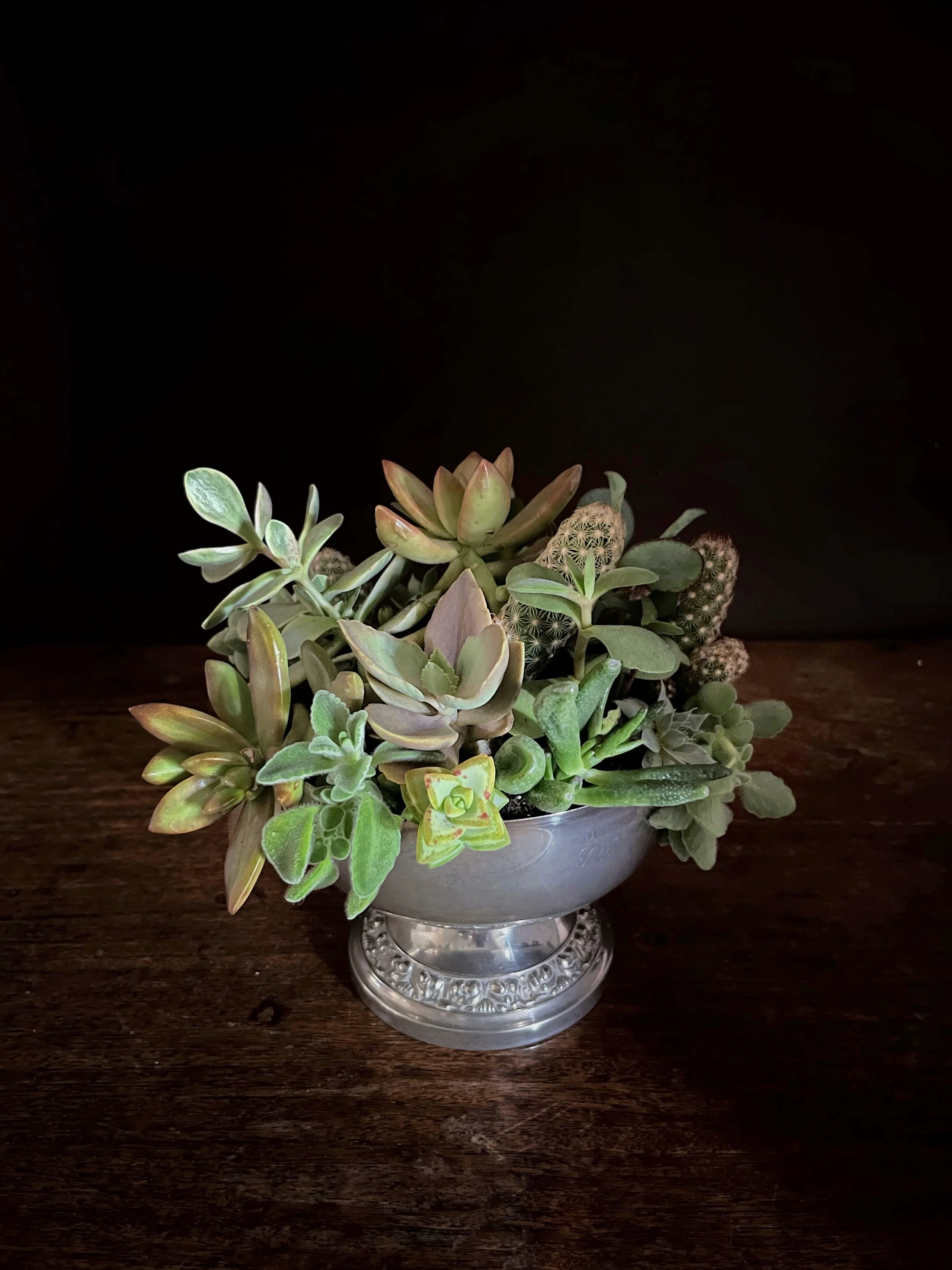 Each of our pieces is unique, planted in a container chosen for its beauty and for the story it has to tell.